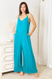 This spaghetti strap tied wide-leg jumpsuit is a modern and trendy choice for any occasion. Its wide-leg design and spaghetti straps create a flattering silhouette, while the tied detail adds a touch of elegance. This jumpsuit is chic and comfortable, perfect for a night out or a summer event.