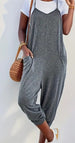 Solid Patched Pockets Overall Jumpsuit - Versatile V-neck Design For Spring & Summer - Women's Clothing - For Fashionable Women - Perfect For Casual & Outdoor Occasions - Great Gift For Birthday & Hol